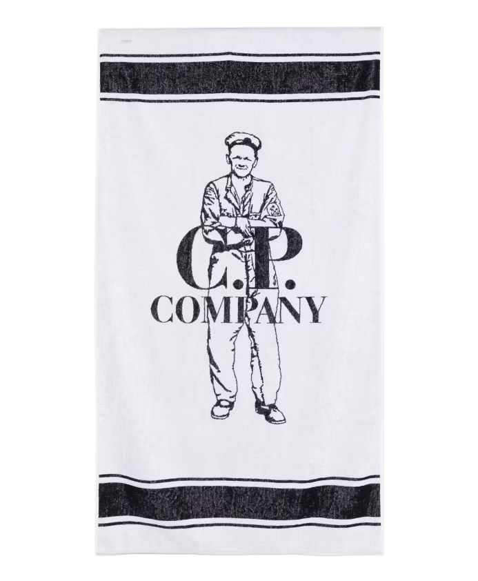 C.P. COMPANY Beach Towel. Featuring the iconic famous British Sailor figure. Which remains the centre point of design Made from 100% soft & absorbent cotton. This towel is the ideal beach/bathroom size. All measurements are approximate. This beach towel is such a classic from – C.P. Company – 100% GENUINE, 100% GUARANTEED!!